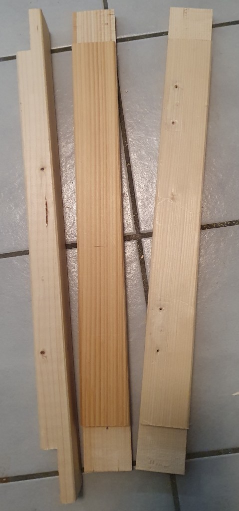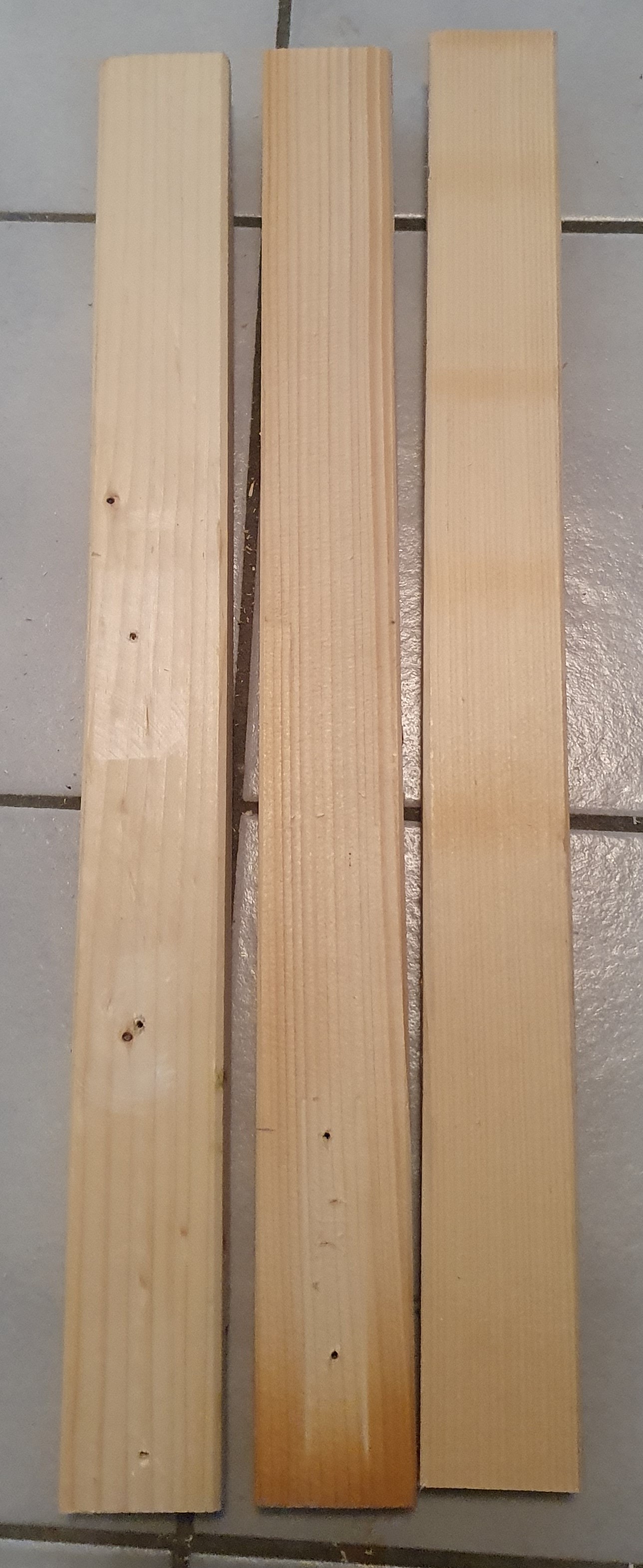 Zuerst werden die Leisten auf 6x59cm und 6x116cm zugesägt.